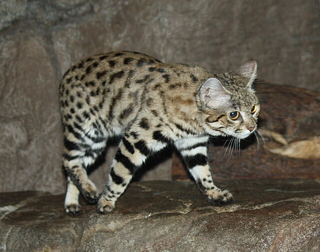 斑点のある小型ネコの中でも、オセロット属(Leopardus)ではなく、アフリカの乾燥地に適応したFelis属の仲間に分類されます。
